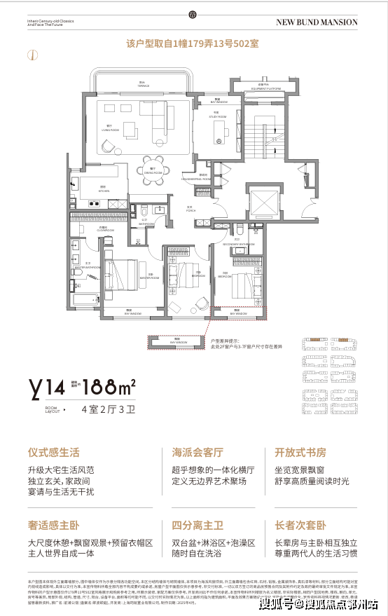 极致奢华:针对海派精英生活秩序再设计,双向私密电梯入户、家政处理间、无界会客厅,媲美大平层的尺度感,见证豪宅待客礼仪升华。